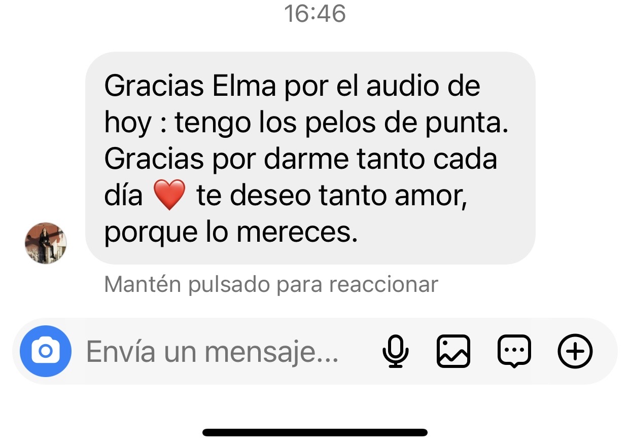 Aquí encontrarás testimonios de personas que forman parte de la comunidad y de quienes han trabajado con Elma a lo largo de estos años, compartiendo su experiencia y lo que han vivido junto a ella