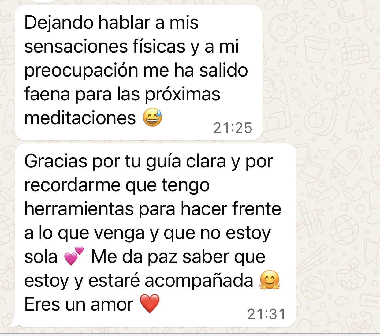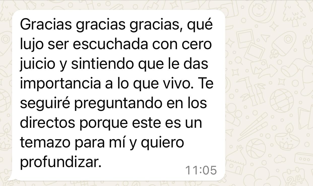Incluido en la comunidad es una vez al mes individual vía audio por Whatsapp o todos los martes por las mentorías en conjunto. Además, se puede pedir una sesión individual exclusiva para miembros