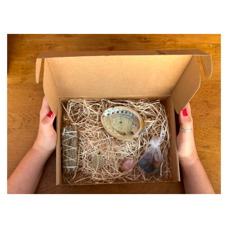 Cajita de cartón con detalles de temática espiritual